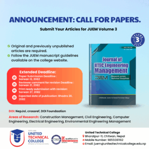 The Journal of UTEC Engineering Management (JUEM) is now accepting original, unpublished articles for Volume 3 (2025)!