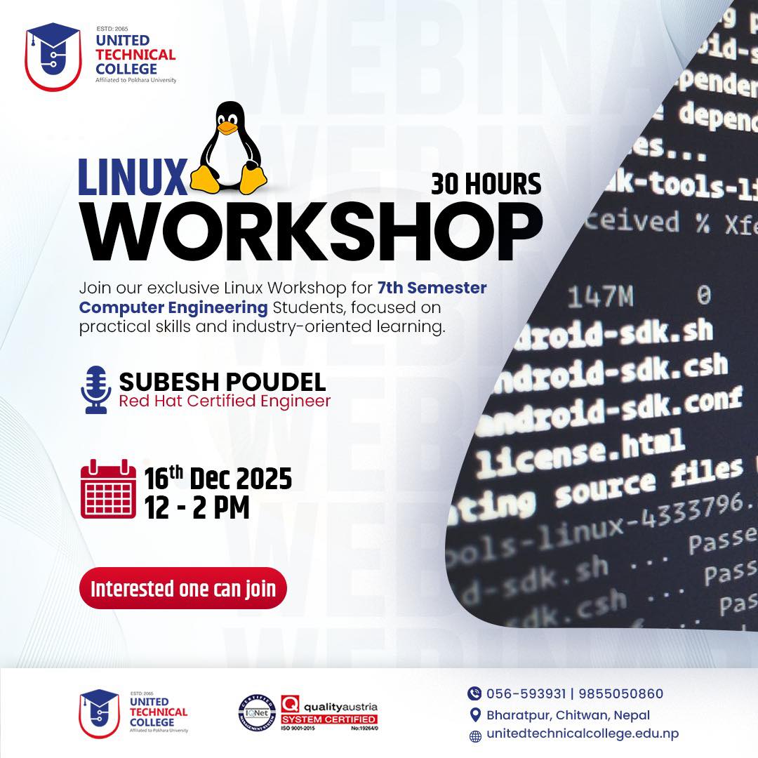 United Technical College Bharatpur-11, U-TEC Chowk, Bharatpur 44200, NepalUnited Tech Club, in collaboration with United Technical College, is proud to announce United Tech Fusion 2082, a technology-focused event designed to encourage innovation, creativity, and practical learning among students and tech enthusiasts. United Tech Fusion 2082 will feature two major competitive events: Robo RaceThis event challenges participants to design and control robots capable of […]